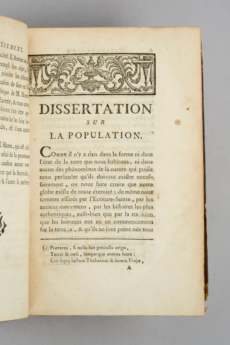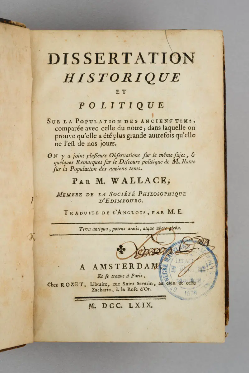 Wallace, William. Dissertation historique et politique sur la population des anciens temps, comparée avec celle du nôtre. Amsterdam; Paris: Rozet, 1769.