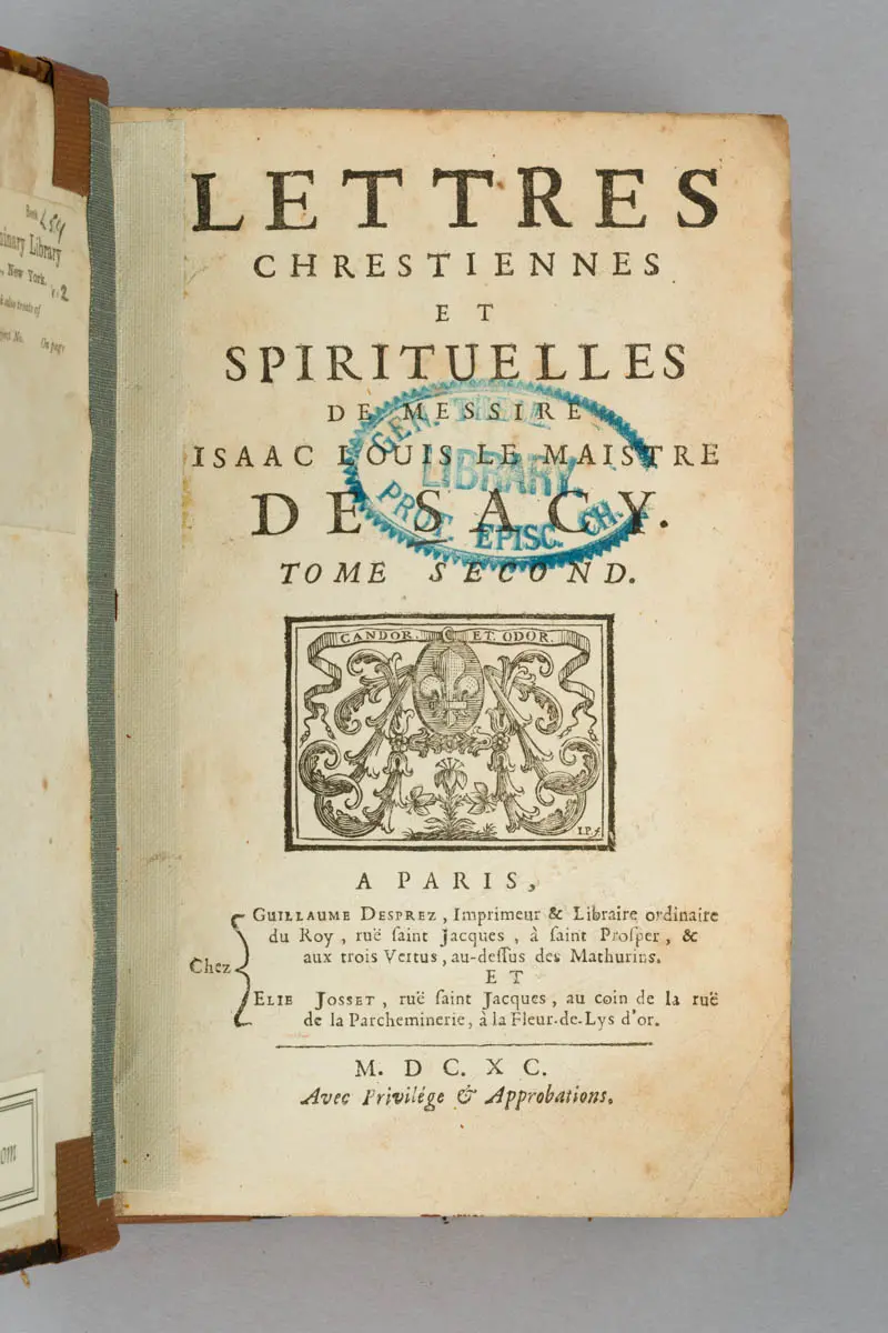 Le Maistre de Sacy, Isaac-Louis. Lettres chrétiennes et spirituelles. Paris: Guillaume Desprez; Elie Josset, 1690.