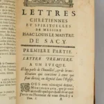 A seventeenth-century Paris printing of the spiritual letters of Isaac-Louis Le Maistre de Sacy, one of the central figures of the Port-Royal movement and a major voice in French religious life. Works of this nature circulated widely among clergy and educated lay readers, shaping devotional practice well beyond their original community.