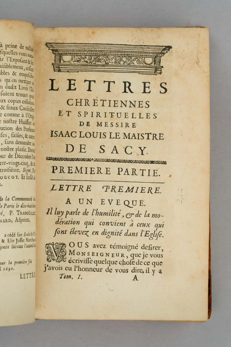 Le Maistre de Sacy, Isaac-Louis. Lettres chrétiennes et spirituelles. Paris: Guillaume Desprez; Elie Josset, 1690.