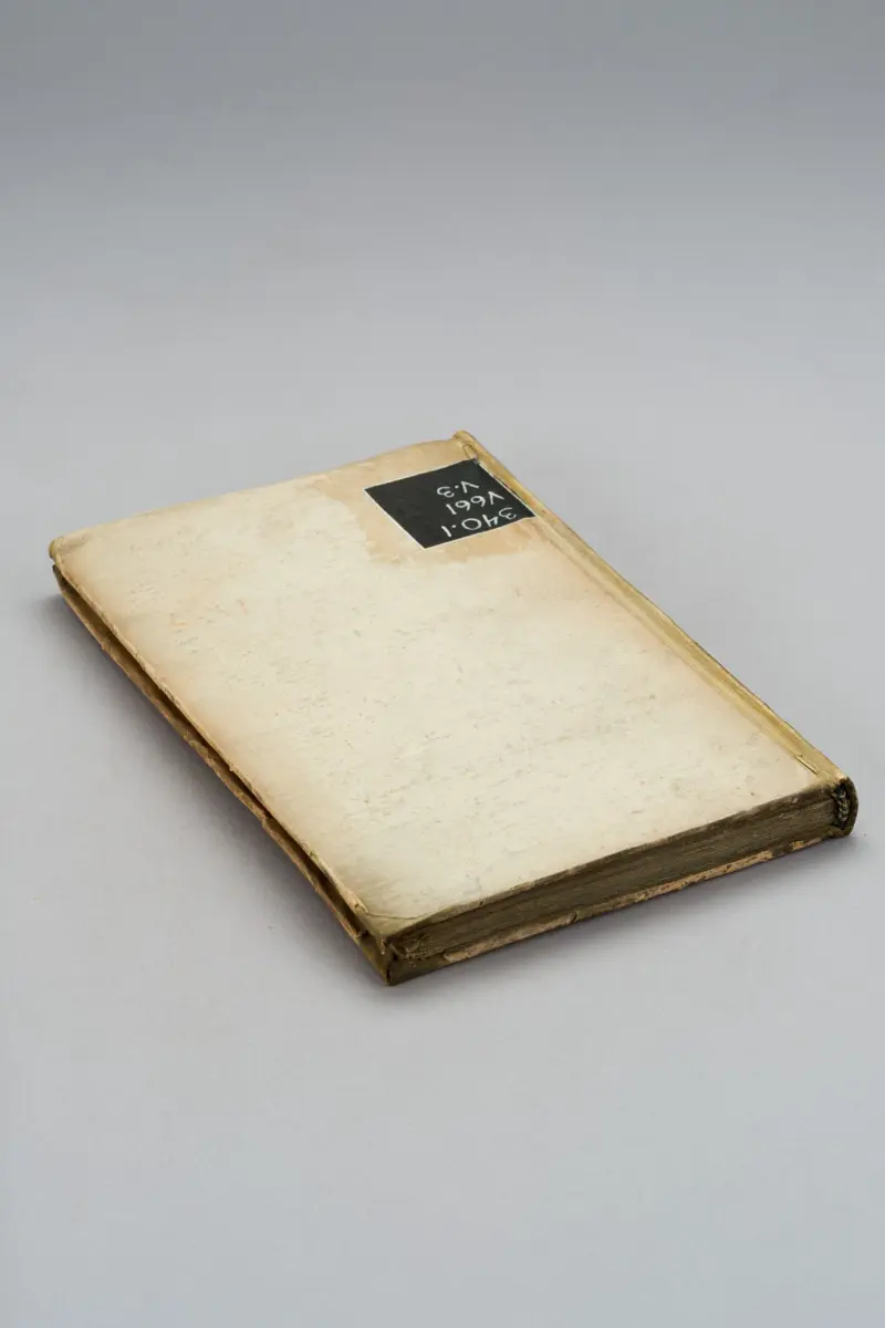 Contemporary vellum, red morocco spine labels, later paper shelf numbers.